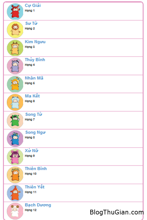 Xếp hạng độ vô tình vô nghĩa của 12 chòm sao