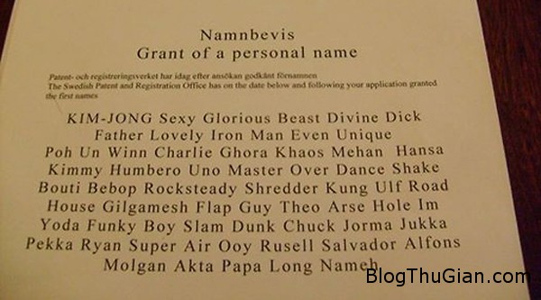Tờ Nyheter24 địa phương cho biết, hiện họ và tên chính thức trên giấy tờ của anh là Kim-Jong Sexy Glorious Beast Divine Dick Father Lovely Iron Man Even Unique Poh Un Winn Charlie Ghora Khaos Mehan Hansa Kimmy Humbero Uno Master Over Dance Shake Bouti Bepop Rocksteady Shredder Kung Ulf Road House Gilgamesh Flap Guy Theo Arse Hole Im Yoda Funky Boy Slam Duck Chuck Jorma Jukka Pekka Ryan Super Air Ooy Rusell Salvador Alfons Molgan Akta Papa Long Nameh Ek.