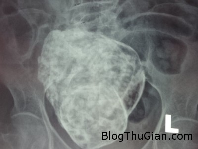 Hình ảnh “bào thai đá” trong bụng bà cụ 76 tuổi.
