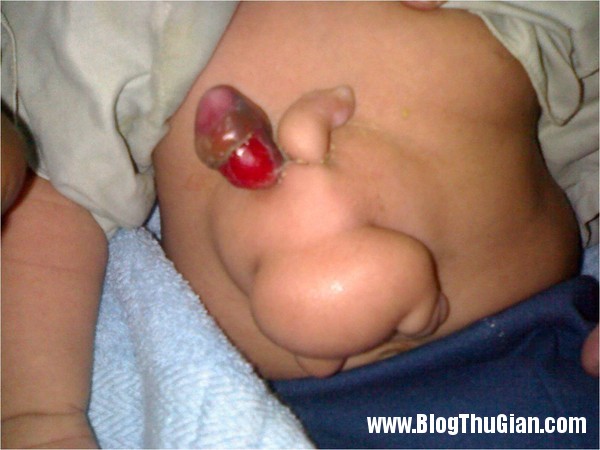 Cá thể người anh em song sinh phát triển không hoàn thiện dính liền với cơ thể bé trai.