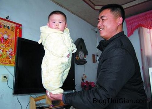 Để chứng minh với các phóng viên, anh Wang cho bé Yue Yue đứng lên tay. Và trước sự kinh ngạc của tất cả mọi người, bé Yue Yue tỏ ra tự tin và đứng vững như diễn viên xiếc trên bàn tay bố trong 10 giây mà không hề tỏ ra lo sợ gì.