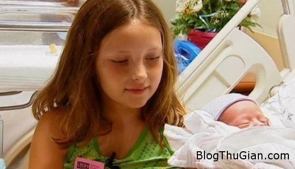 Bé Jazmine ở cạnh mẹ từ lúc cô sinh con đến nay. Bác sĩ và y tá ở bệnh viện tại Tampa, Florida, ấn tượng trước hành động của cô bé đến mức vừa tặng Jazmine một tờ giấy chứng nhận đặc biệt.