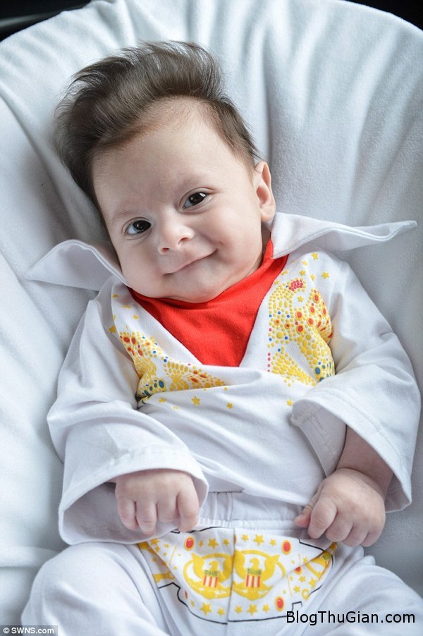 Trong khi phần lớn các bậc cha mẹ vẫn luôn tự hào về nét mặt hay vóc dáng giống người thân của con nhỏ mới chào đời thì cặp vợ chồng người Anh Maria và Chris Georgious lại tự hào về mái tóc dựng sành điệu giống nam ca sĩ quá cố Elvis Presley của bé trai George Georgious mới sinh nhà mình. Được biết, chỉ sau khi chào đời ít phút, mái tóc dày dặn của bé trai này đã hình thành.