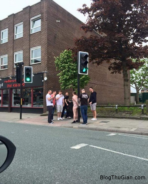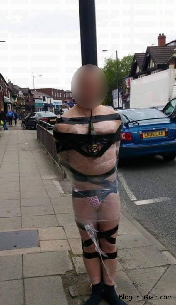 Thật không có gì tuyệt vời hơn là trút bỏ bộ quần áo công sở nóng nực và dạo phố trong ngày nghỉ đẹp trời thời gian này ở Anh. Tuy nhiên, một nhóm bạn của anh chàng thanh nhiên này lại đi quá xa khi lột đồ của bạn mình và trói vào cột đèn giao thông ở Hazel Grove, Manchester, Anh.