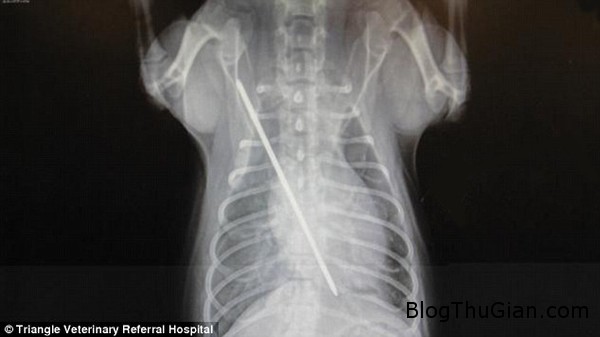 Bị kim đan len dài 25cm xuyên qua tim chú chó vẫn may mắn thoát chết