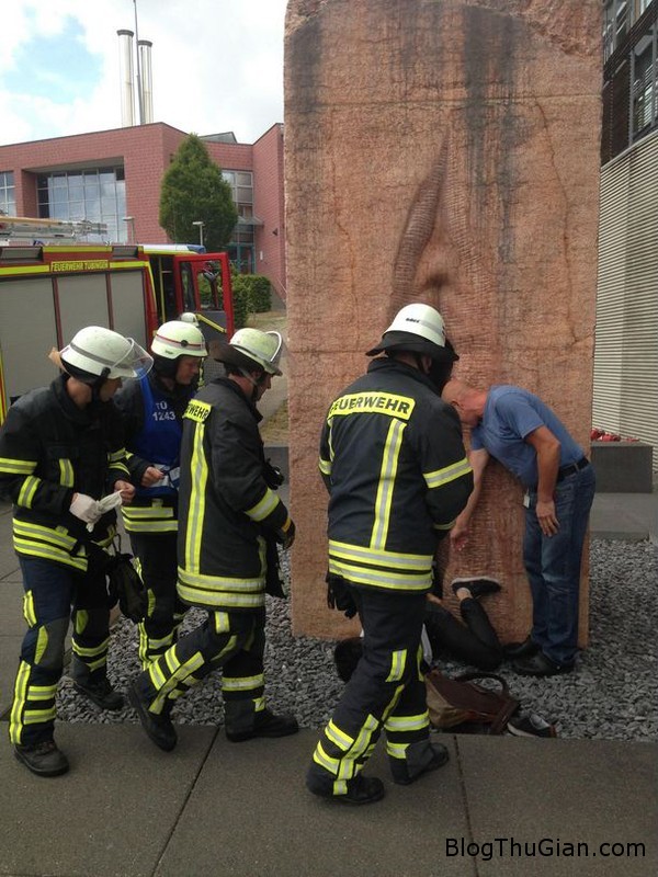Chàng sinh viên bị mắc kẹt trong bức tượng hình âm đạo khổng lồ.