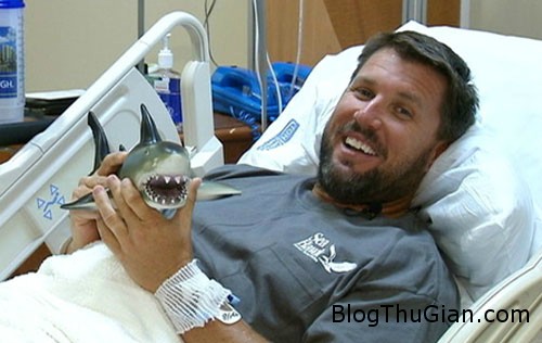 Máu sau đó chảy rất nhiều ở chân và lênh láng khắp mặt nước. May thay, bố vợ anh kịp nhảy xuống nước để ngăn đợt tấn công tiếp theo của cá mập. Anh được đưa lên bờ và một bác sĩ giúp đỡ băng bó vết thương, rồi đưa anh tới bệnh viện.