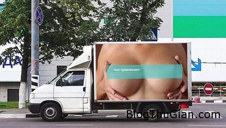 Biển quảng cáo lớn in hình ngực phụ nữ với khẩu hiệu “Họ lôi cuốn” được đặt trên 30 chiếc xe tải khắp Moscow. Khi những chiếc xe tải này lái lòng vòng khắp Moscow, nhiều vụ tai nạn đã xảy ra do nam giới bị phân tâm.