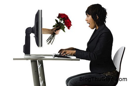 Woman receiving roses online