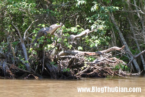 Một con cá sấu ở sông Pearl, bang Mississippi đang sưởi năng trên cây. Ảnh: LiveScience