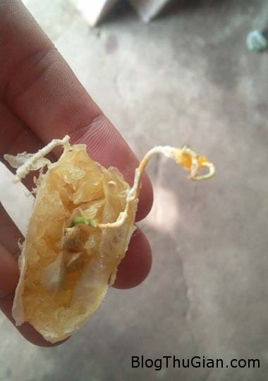 Anh Bình cho hay, cách đây 2 tháng, gia đình có mua 2 kg cam ở chợ về ăn nhưng bỏ quên trong góc nhà. Cách đây vài ngày, trong lúc dọn nhà, anh Bình giật mình khi nhìn thấy những trái cam vẫn còn tươi nguyên, từng múi không hề có dấu hiệu thối, hỏng, dù hạt đã nảy mầm, rễ mọc dài 3 – 4 cm.