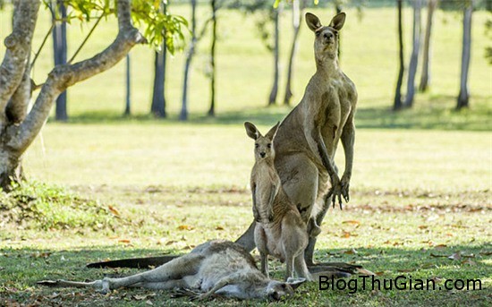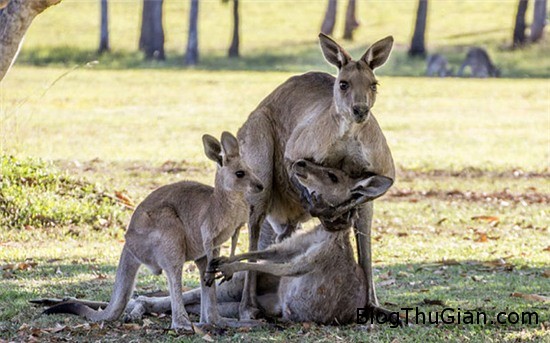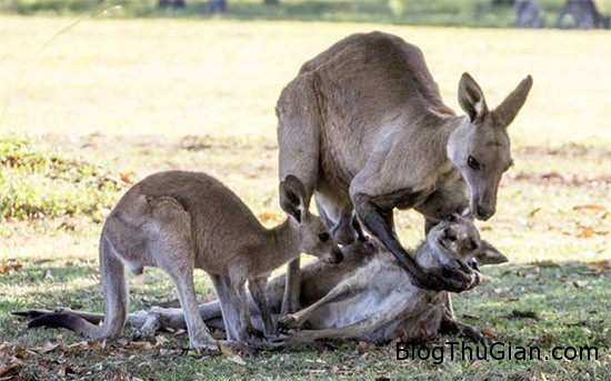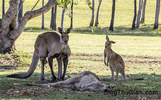 Hai con chuột túi canh xác chuột túi mẹ đã chết.