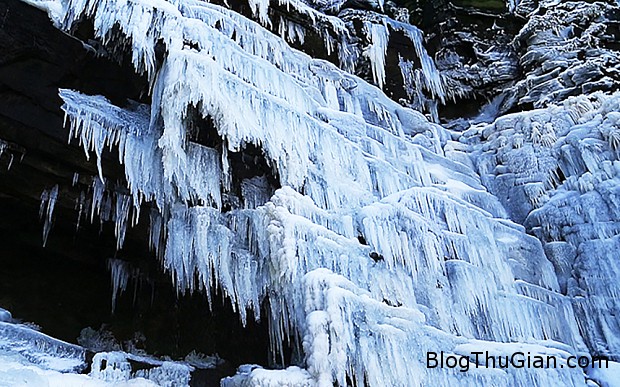 Cảnh thác nước bị đóng băng đẹp ngỡ ngàng