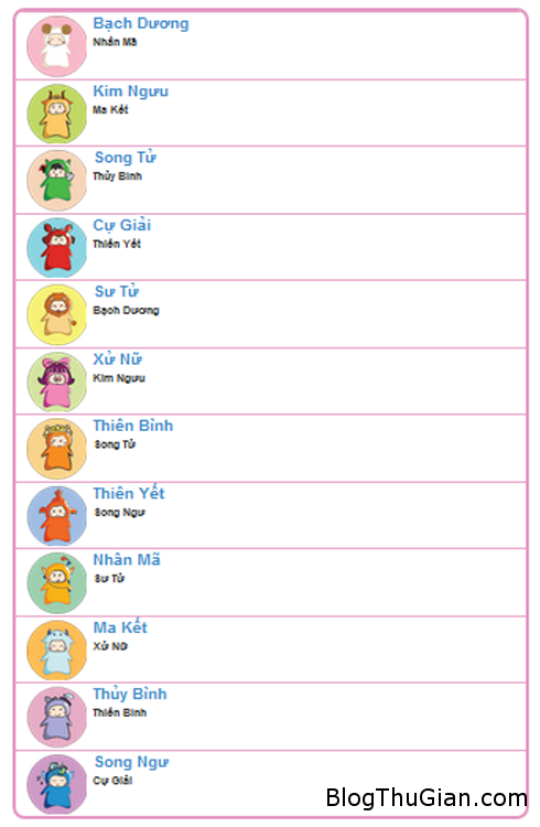 Vẻ ngoài thường thấy của 12 chung hoàng đạo