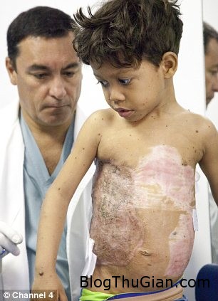 Bé đã trải qua liệu trình cấy ghép da phức tạp.
