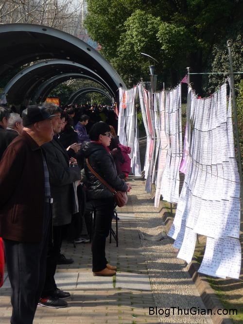 Nhiều bậc cha mẹ treo tờ “quảng cáo” tìm bạn đời cho con tại chợ hôn nhân Thượng Hải (Ảnh Erica Bray)