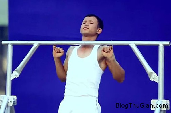 Chỉ trong vòng 30 giây, Meitei, nặng 51 kg, khiến khán giả kinh ngạc khi hít được 16 lần trên xà đơn.