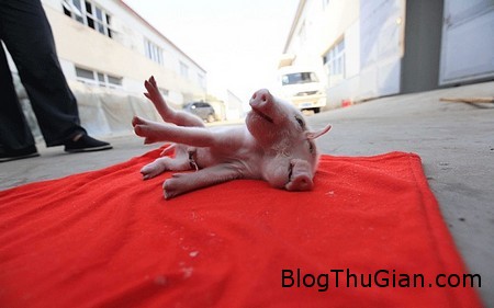 Chú heo không thể đứng vững do phần đầu quá to