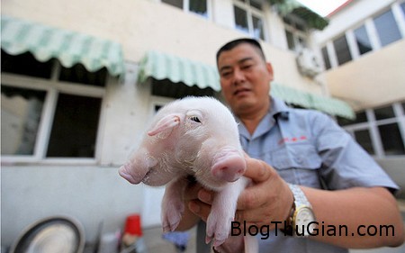 Chú heo đặc biệt có 2 đầu, đủ 4 mắt nhưng chỉ có 3 tai, có thể ăn được bằng cả 2 miệng của 2 chiếc đầu. Người đàn ông sau khi mang chú heo về nhà đã pha sữa và cho chú heo bú bằng bình.