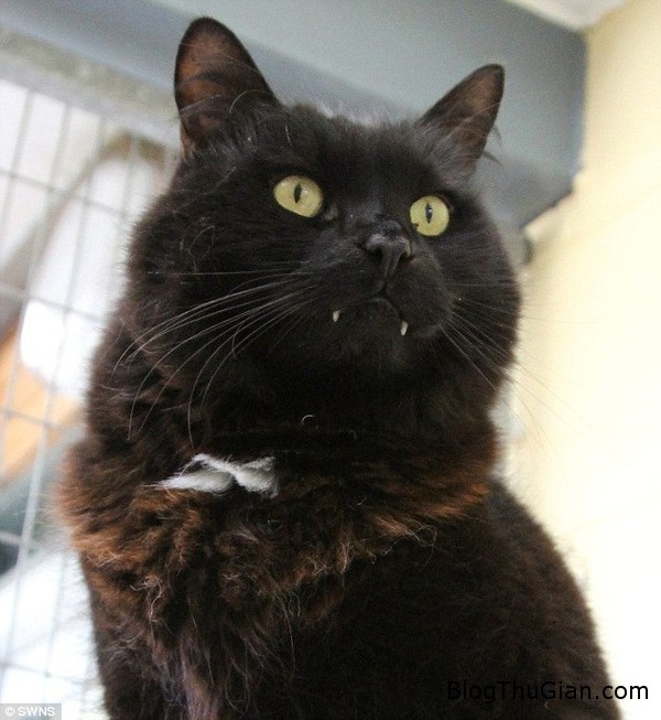 Chú mèo 9 tuổi có bộ lông màu đen tuyền này có ngoại hình không gây thiện cảm với nhiều người chỉ vì cặp răng nanh nhọn, chìa ra ngoài như ca mà rồng. Nó được đem tới Hội bảo vệ mèo Blue Cross ở làng Lewknor, hạt Oxfordshire, Anh Quốc cách đây 3 tháng. Nhiều người vẫn lo sợ, Timmy có thể không bao giờ tìm được mái ấm mới vì bộ mặt “khát máu” của mình trong khi hầu hết những con mèo khác được nhận nuôi trong vòng chưa tới 1 tháng. Mặc dù mèo đen thường bị gắn liền với quan niệm về vận xui nhưng cuối cùng Timmy cũng đã được một phụ nữ có tên Ann Drummond nhận nuôi.