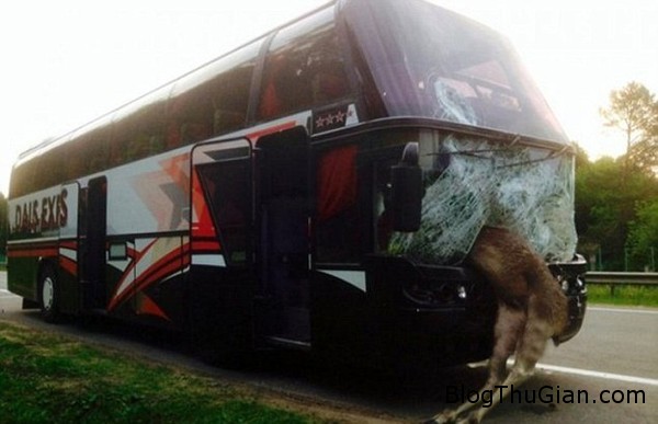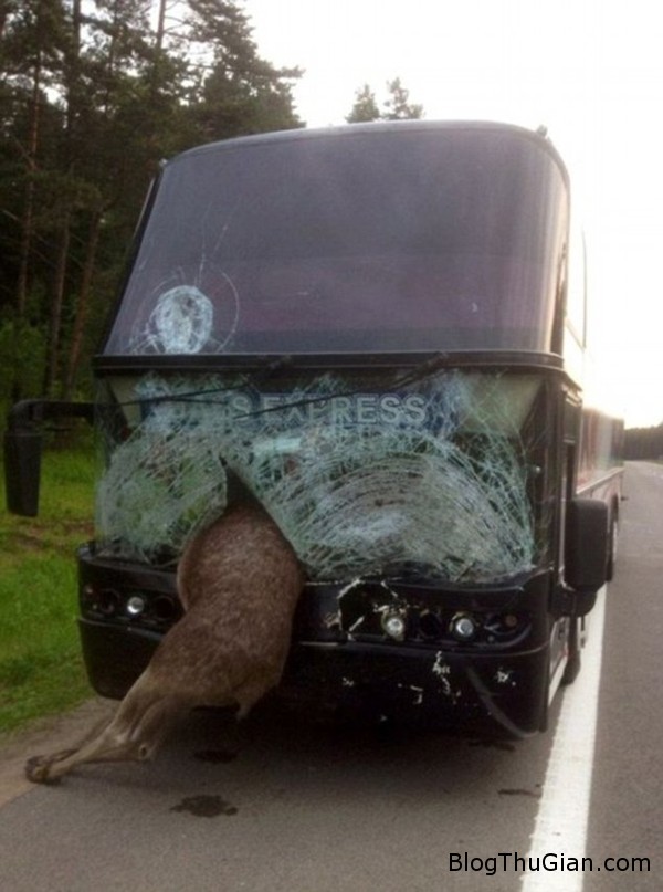 Ô tô đâm phải súc vật trên đường cao tốc được coi là tai nạn phổ biến, mỗi ngày đều xảy ra ở nhiều nơi trên thế giới. Thế nhưng tại Belarus, các hành khách trên chuyến xe bus từ thành phố Minsk đi Kiev đã vô cùng hoảng sợ khi nhìn thấy một con nai lao ngược chiều về phía ô tô của mình, khiến lớp kính chắn gió bị vỡ.