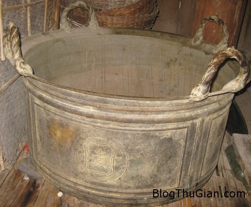 Chiếc nồi đồng cổ nặng 84 kg ở bản Hiêu có thể nấu được cho 200 người ăn cùng lúc. Ảnh: Hoàng Phương.