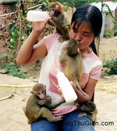 Cô gái cho khỉ bú sữa của mình