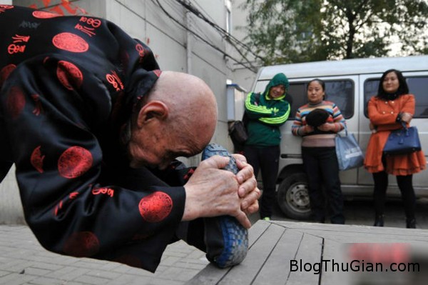 Cụ Zhang sinh năm 1918 nhưng cơ thể cụ rất dẻo dai, linh hoạt. Thậm chí một người trẻ tuổi cũng khó có thể thực hiện được những động tác như cụ đang làm.
