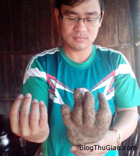 Anh Hoàng cho biết, củ từ có hình dạng giống bàn tay người được anh đào cách đây khoảng 1 tuần. Nó có trọng lượng khoảng 400 gram, có những nhánh nhỏ mọc ra như ngón tay người. Trong đó có 4 “ngón tay” và 1 “ngón tay cái” ốp vào lòng bàn tay, các đầu “ngón” nhọn như móng tay được giũa. Đặc biệt, trong “lòng bàn tay” khi mới đào lên có những đường nét giống như chỉ tay người.