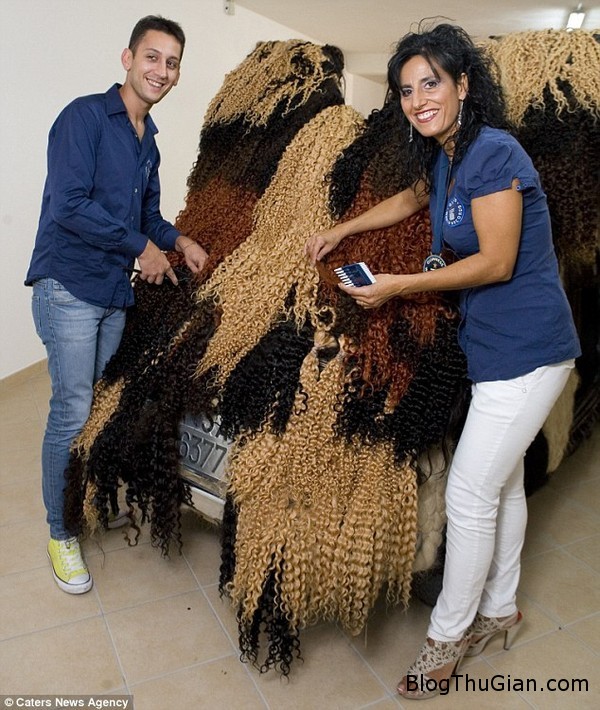 Thừa hưởng bệnh nghề nghiệp, cô Maria Lucia Mugno, nhà tạo mẫu tóc 44 tuổi người Ý đã cùng với trợ lý của mình dành ra hơn 150 giờ lao động vất vả để cho ra đời chiếc ô tô độc đáo được bao phủ kín bằng tóc người. Ý tưởng kỳ quặc nhưng thú vị này đã giúp cô được ghi danh vào Kỷ lục Guinness Thế giới.