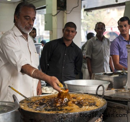 Một đầu bếp ở Ấn Độ có khả năng dùng bàn tay trần của mình vớt cá rán ra khỏi chảo dầu đang sôi.