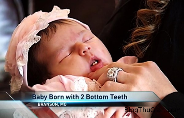 Một bà mẹ ở bang Missouri, Mỹ, bất ngờ khi nhận thấy cô con gái mới chào đời của mình có tới hai chiếc răng hoàn thiện ở hàm dưới.