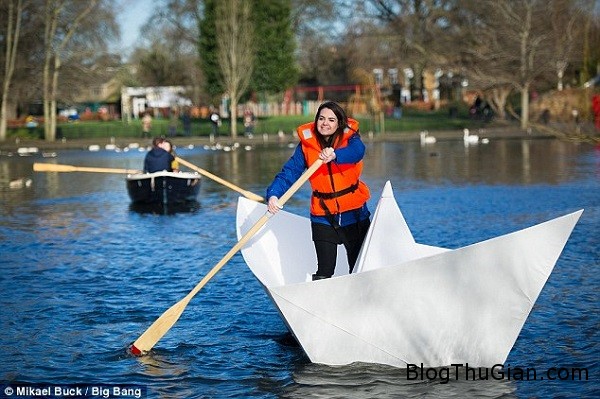 Gấp thuyền giấy khổng lồ nặng 100kg để bơi quanh hồ