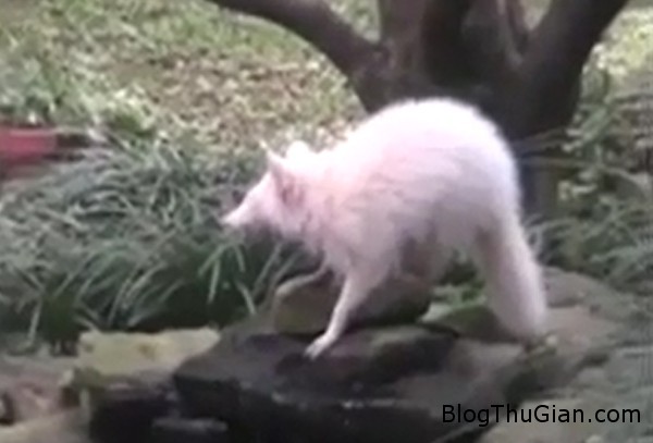 Mặc dù đoạn video được quay khoảng cách không gần nhưng người xem vẫn có thể nhận ra màu lông khác biệt của con gấu trúc Mỹ. Khác với thông thường, lông của nó không có màu xám mà lại mang màu trắng do mắc bệnh bạch tạng. Trong đoạn clip quay lại được, con gấu trúc Mỹ đang đánh hơi ở khu vực giếng nước.