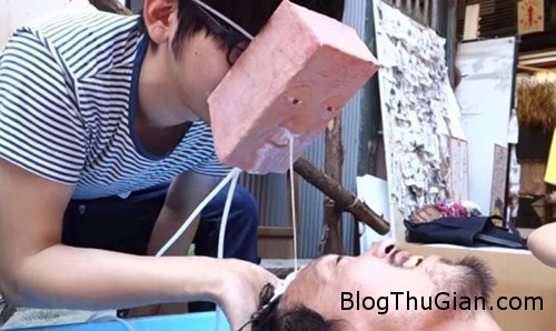 Mới đây, một chàng trai người Nhật đã chia sẻ trên trang Youtube chiếc mặt nạ độc đáo do mình phát minh. Chiếc mặt nạ làm bằng gỗ khá dày, mô phỏng gương mặt của người đàn ông lớn tuổi và được sử dụng như một dụng cụ để gội đầu.