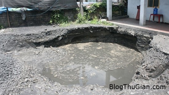 Trước đó, khoảng 17h ngày 21/5, một hố rộng hơn 3 mét và sâu không xác định bất ngờ xuất hiện tại nhà bà Thắng. Chứng kiến sự việc, anh Nguyễn Văn Quang (25 tuổi, thuê trọ ở nhà bà Thắng) kể lại, lúc đó, mình vừa tắm xong. Khi nhìn ra sân, anh không thấy xe máy nên tưởng mất trộm. Khi chạy ra xem, anh hoảng hồn phát hiện một hố sâu ở sân. Chiếc xe máy Jupiter của anh đã bị hố tử thần này ‘nuốt’ gọn.