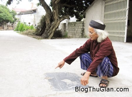 “Thời còn nhỏ, nhiều lần đi chăn trâu, lũ trẻ chúng tôi mấy lần định đào hòn đá ấy lên để xem có gì lạ ở phía dưới mà người lớn dặn dò không được đến gần. Tuy nhiên, nhiều lần thực hiện mà vẫn chưa lần nào thành công vì toàn bị người lớn phát hiện. Mãi đến khi tham dự lễ rước đá đặt lại vị trí cũ tôi mới được quan sát kỹ. Phiến đá đấy dày lắm, nó chìm ở dưới cũng độ 50 cm đấy. Một người bê không được, phải mấy người bê cơ. Bây giờ, một số cháu nghịch ngợm, thi thoảng đi qua đây ướm chân vào hai vết lõm. Nhưng mỗi khi như thế là bố mẹ nó lại sợ hãi, loạn hết cả lên.