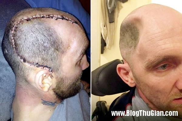 Nếu nhìn từ phía chính diện khuôn mặt, bên đầu bị móp khiến anh Scott trông như bị khuyết thiếu mất một nửa. Để khắc phục tình trạng biến dạng này, các bác sĩ phẫu thuật đã phải sử dụng mỡ bụng để tái tạo lại hình dáng hộp sọ cho anh Scott.