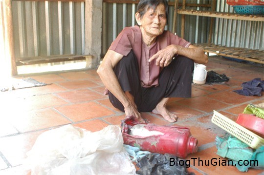 Bà Gỏi rất khốn đốn vì nhiều vật dụng trong nhà đã bị thiêu rụi trong những ngày gần đây.