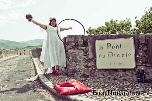 Jodi Rose trong đám cưới của mình với cầu Pont du Diable.