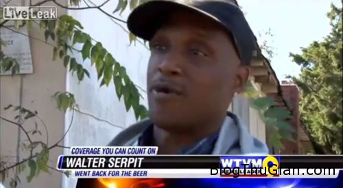 Anh Walter Serpit thoát chết sau khi bê được thùng bia ra ngoài. Ảnh: WTVM