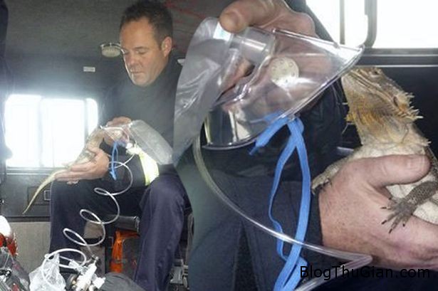 Con thằn lằn được cứu sống khi được thở khí oxy từ mặt nạ dưỡng khí của nhân viên cứu hỏa tại ngôi nhà ở thành phố Bolton, vùng Greater Manchester, Anh