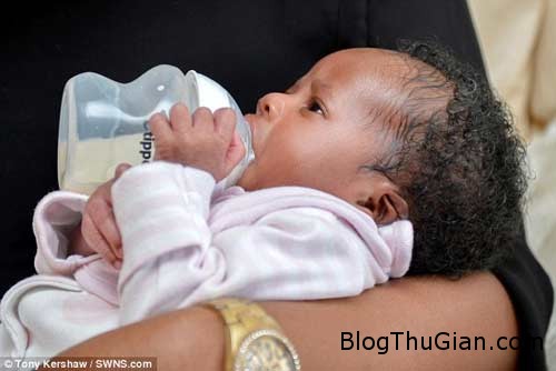 Bé Amara Chiedozie mới 3 ngày tuổi đã biết bù bình