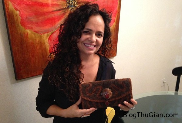Cô Doris Carvalho cầm trên tay chiếc ví làm từ lông chó