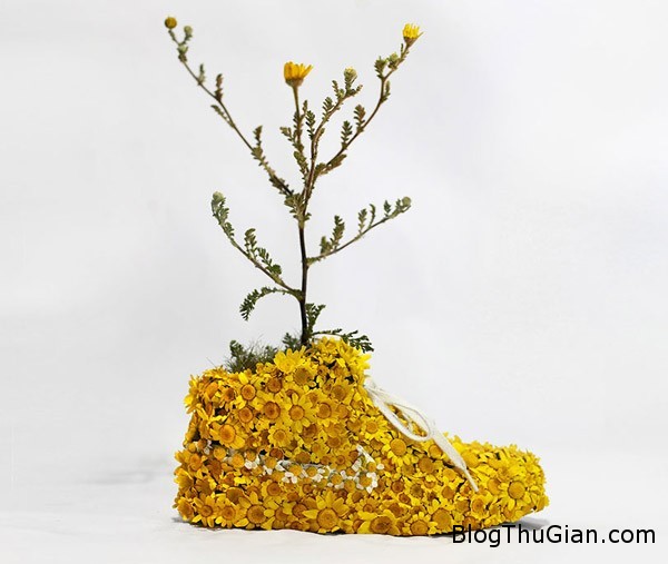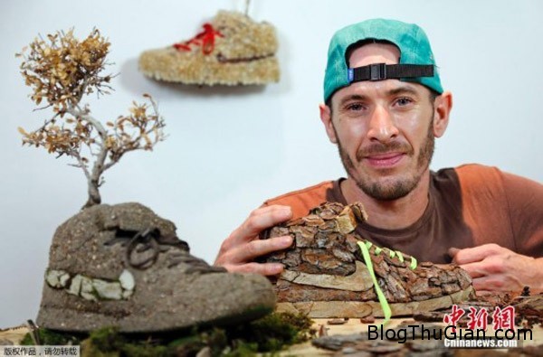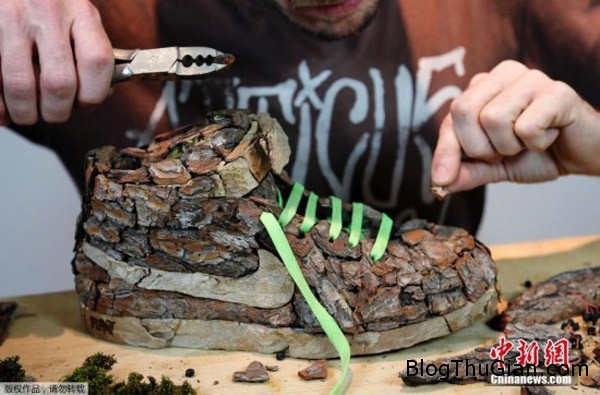 Bên cạnh chiếc giày làm từ vỏ cây khô này, anh Guinet đã từng cho ra đời không ít những chiếc giày Nike làm từ nụ hoa, đất trồng cây nén chặt, hoa cúc…