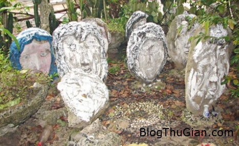 Ngôi nhà luôn vắng chủ, xung quanh sân vườn là nhiều đầu người đầy máu được chính chủ nhân khắc họa bằng xi măng.