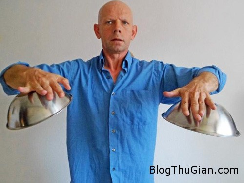 Miroslaw Magola, 55 tuổi, cho biết ông có thể nhảy vòng quanh trong khi một vật thể như vỏ lon đồ uống, nồi chảo hay dao kéo dính chặt vào đầu, tay hay ngực mà không bị rơi xuống.