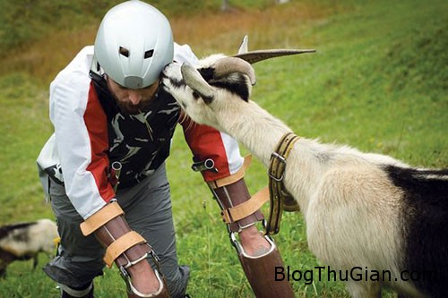 Nhờ có chân tay giả đặc biệt mà anh có thể di chuyển giống chú dê một cách dễ dàng.