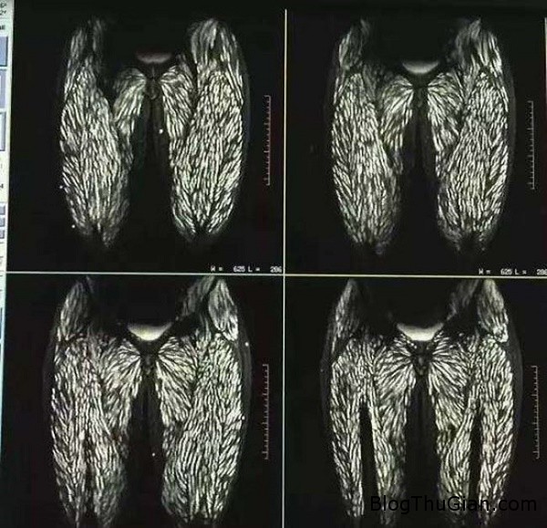 Đây là ảnh chụp x-quang của một người phụ nữ tại Trung Quốc. Toàn bộ cơ thể bà chứa đầy giun kí sinh và u nang vì ăn thịt lợn sống trong suốt 10 năm.