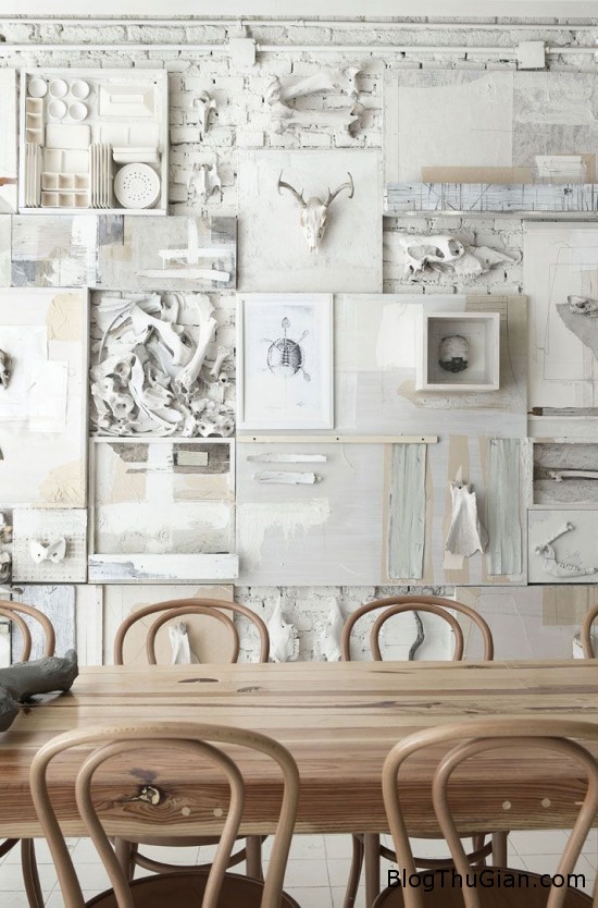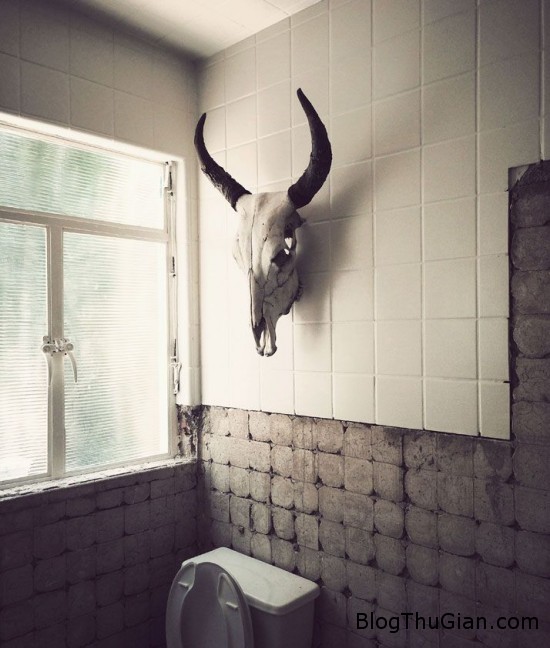 Bạn có thể thấy ở đây những mẩu xương hàm, xương sọ đã được tẩy trắng, tông-xuyệt-tông với với màu trắng của đồ bếp được trưng bày, nhắc nhở thực khách một thực tế rằng xương đã từng được con người sử dụng như thìa, dĩa. Một chiếc xương được treo ở lối vào, để gợi mở về những gì đang ở bên trong.